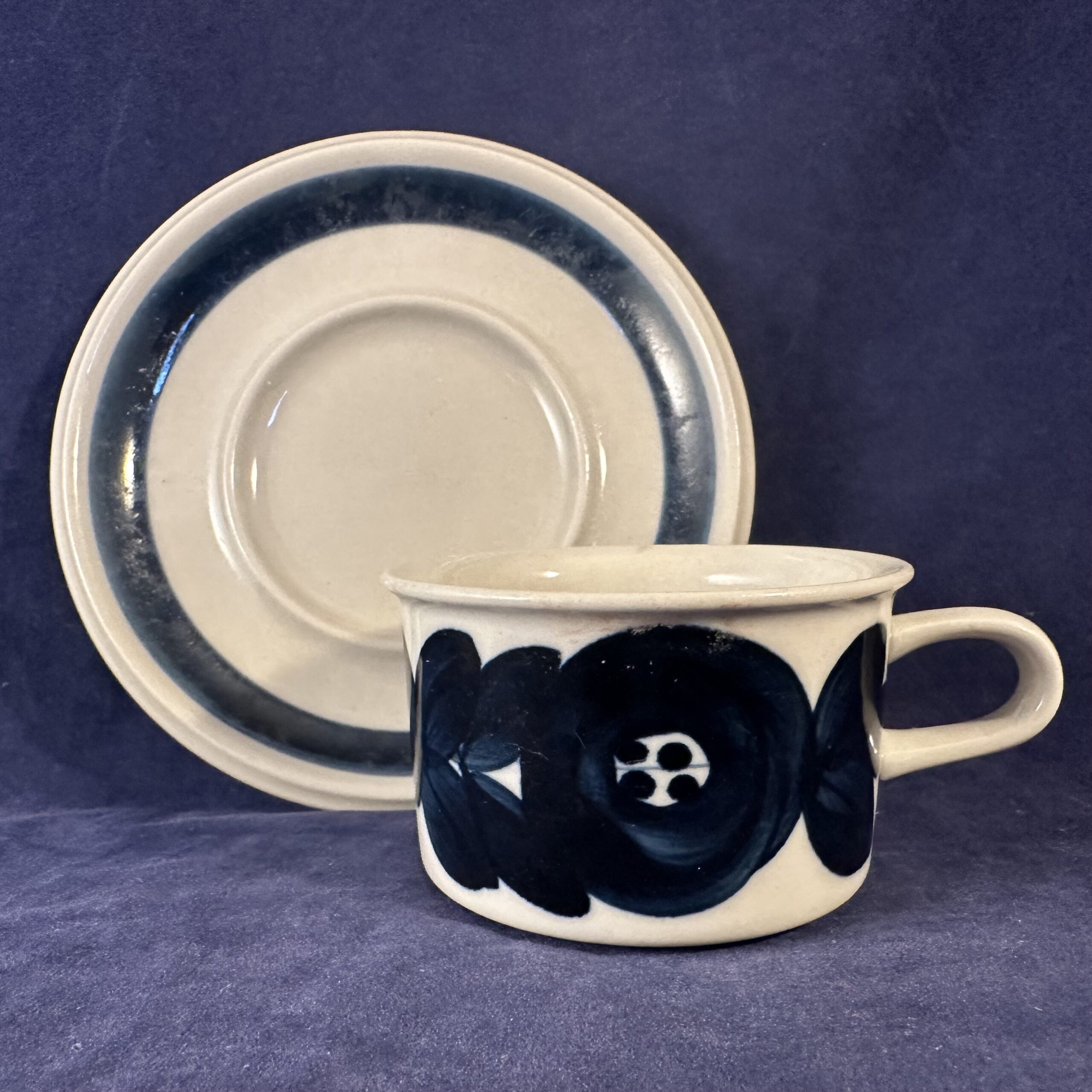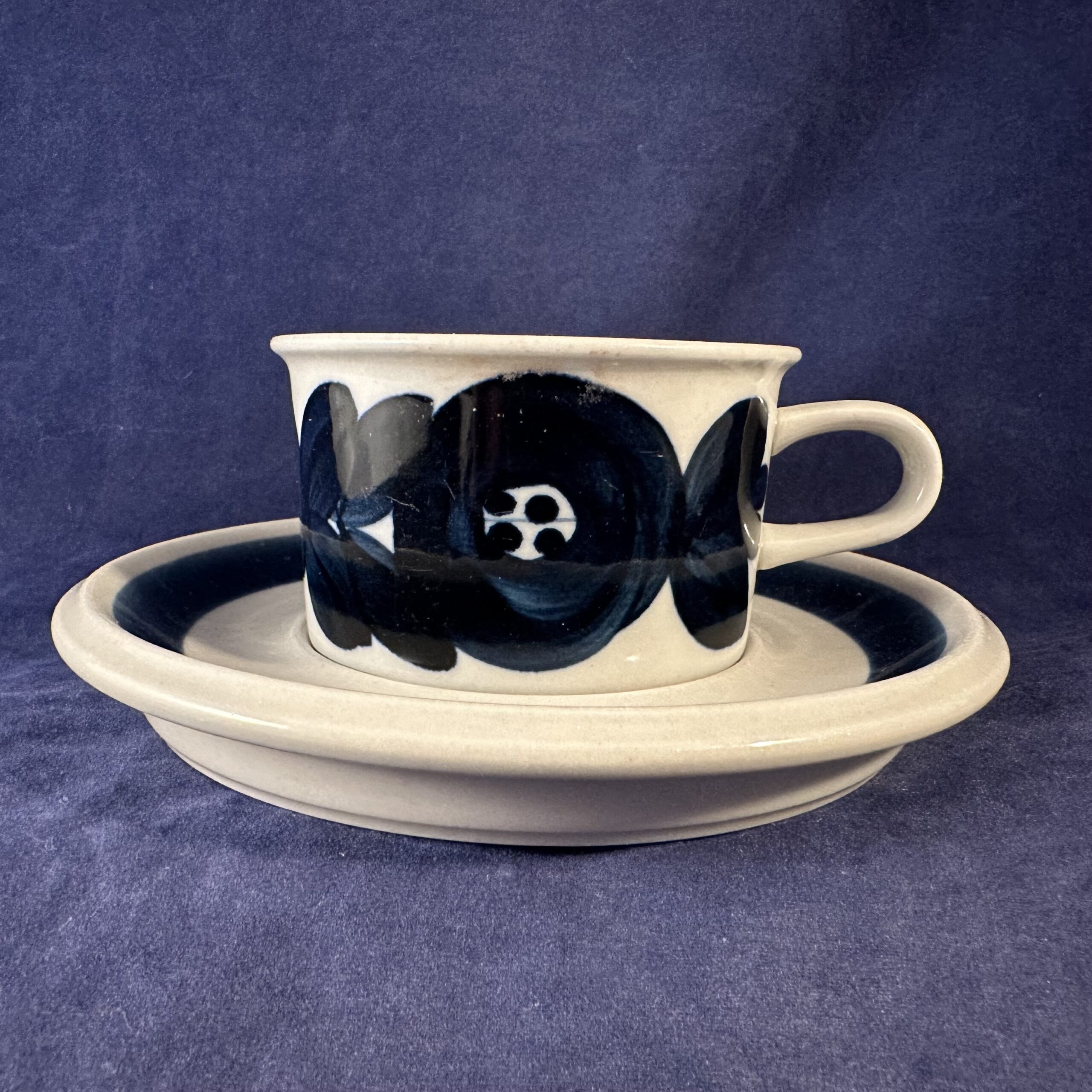 Arabia Finland ‘Anemone’ handgeschilderde espresso kop en schotel, gesigneerd Ulla Procope (blauw)