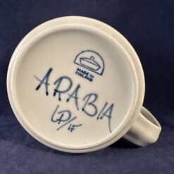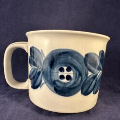 Arabia Finland ‘Anemone’ handgeschilderde mok/beker, gesigneerd Ulla Procope (blauw), hoog 8,5 cm Ø 10 cm