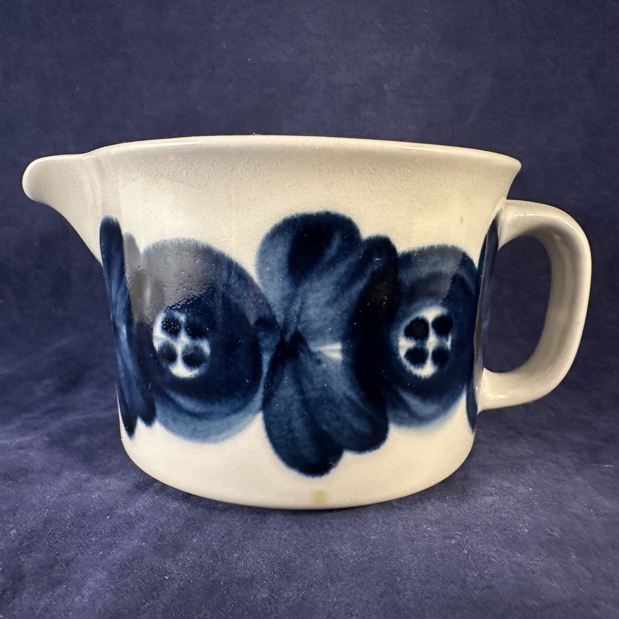 Arabia Finland ‘Anemone’ handgeschilderde roomkan, gesigneerd Ulla Procope, hoog 6,8 cm (blauw)