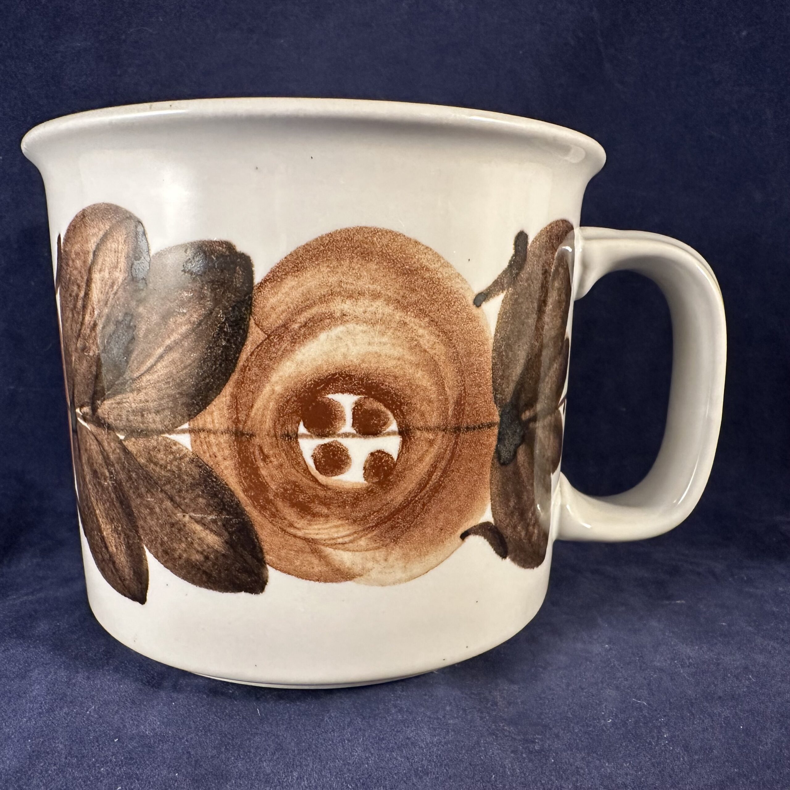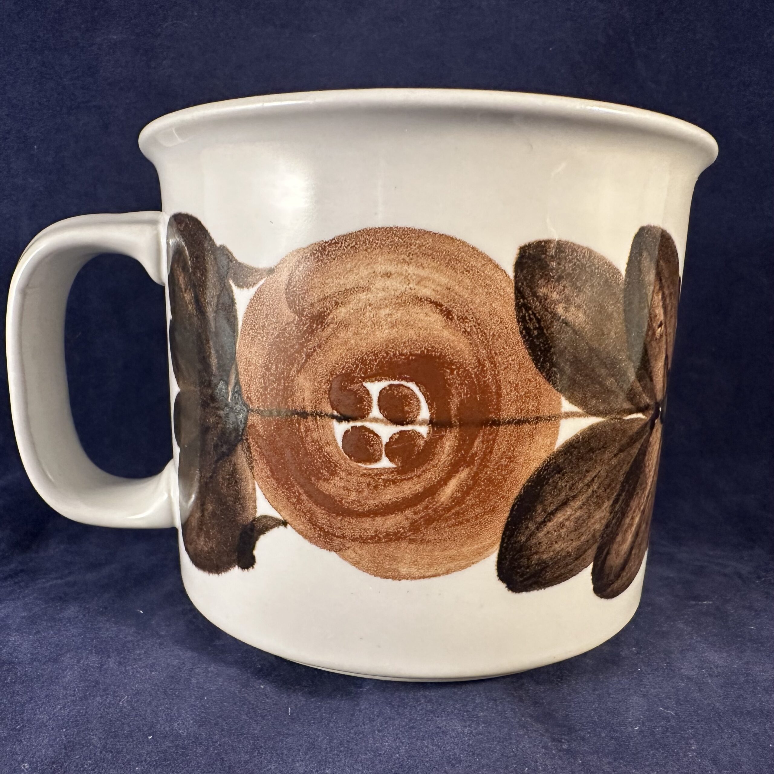 Arabia Finland ‘Rosmarin’ handgeschilderde mok/beker, gesigneerd Ulla Procope (bruin), hoog 8,5 cm Ø 10 cm
