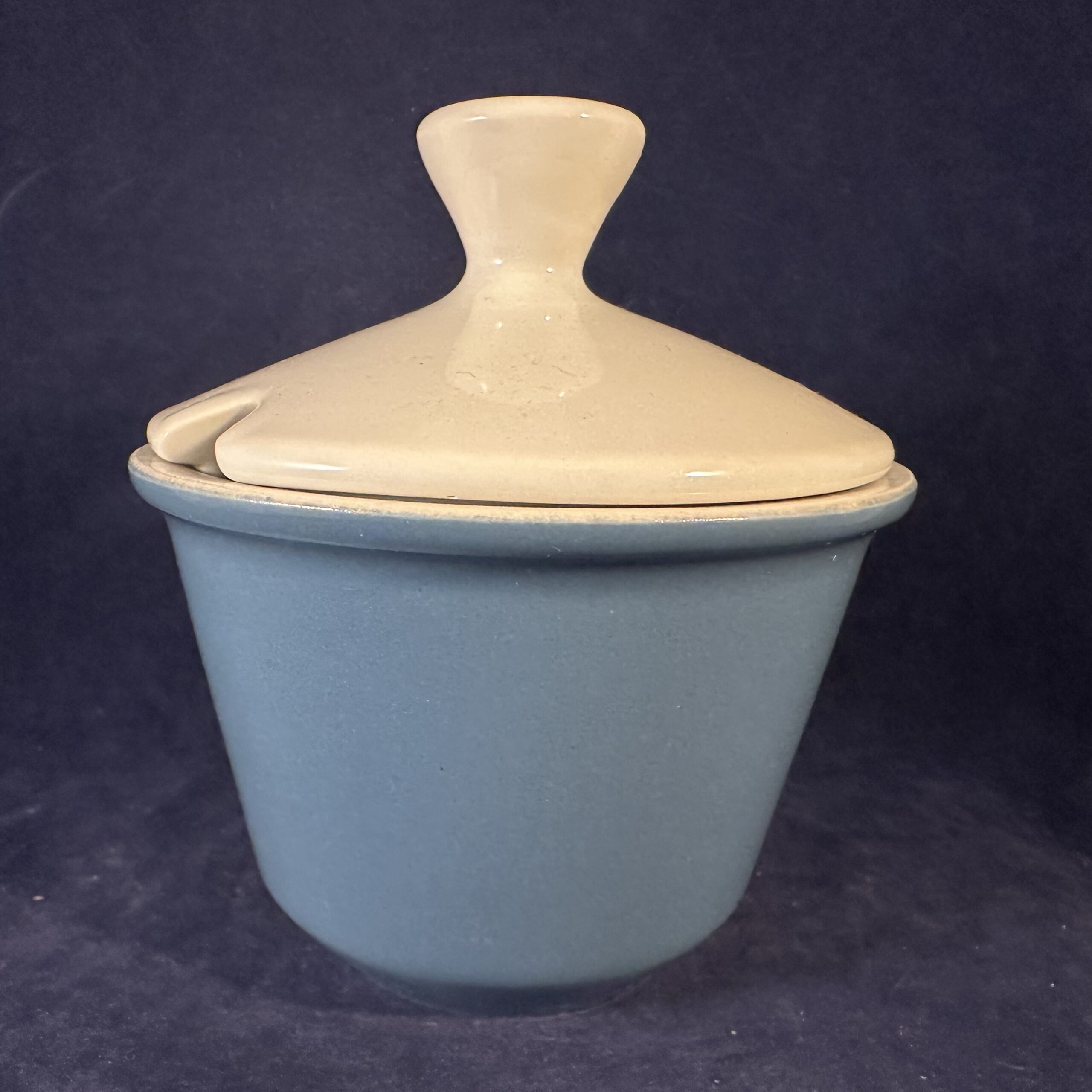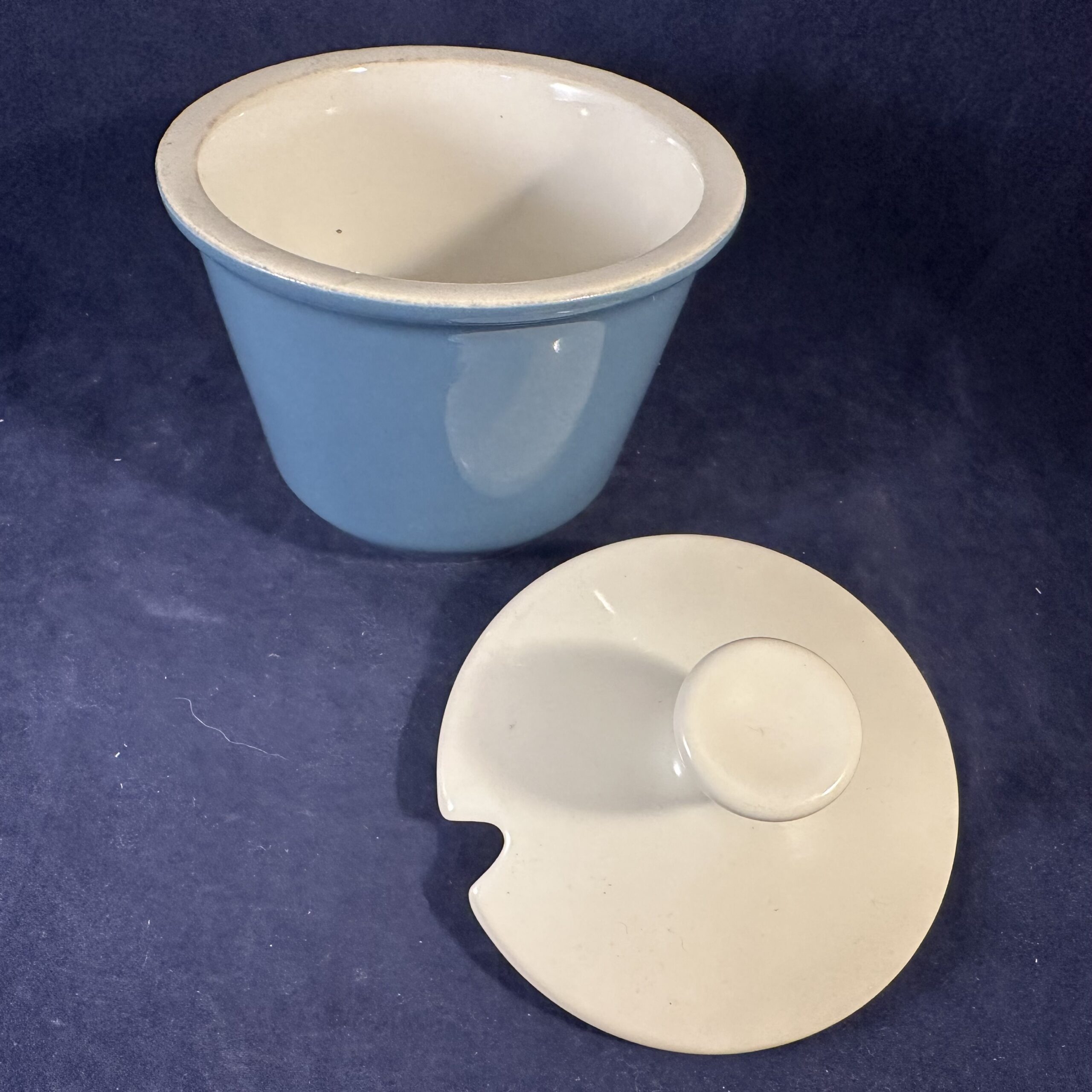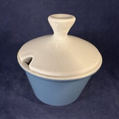 Fris Edam ‘Jubilant’ suikerpot in wit met blauw, hoog 11 cm Ø 10 cm.