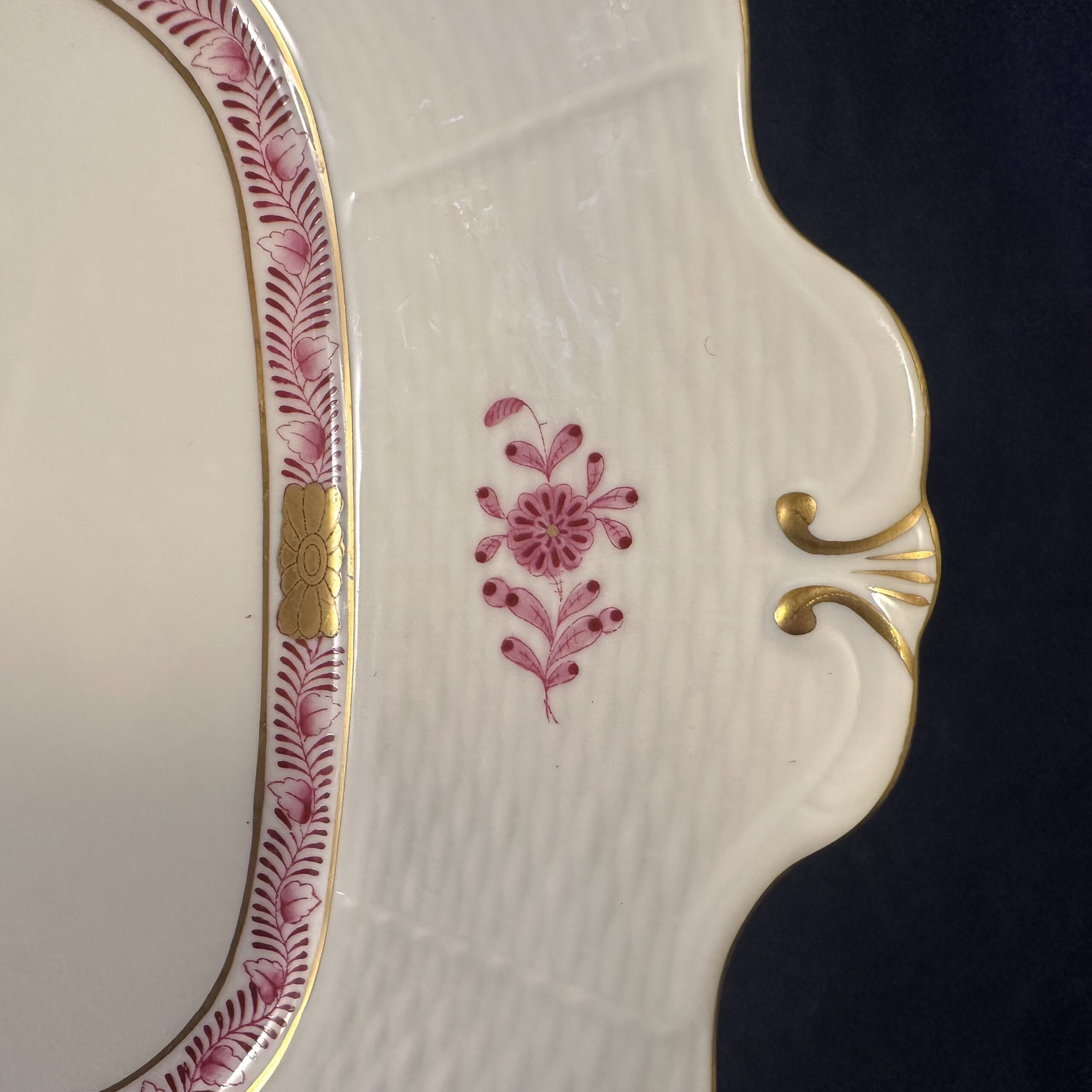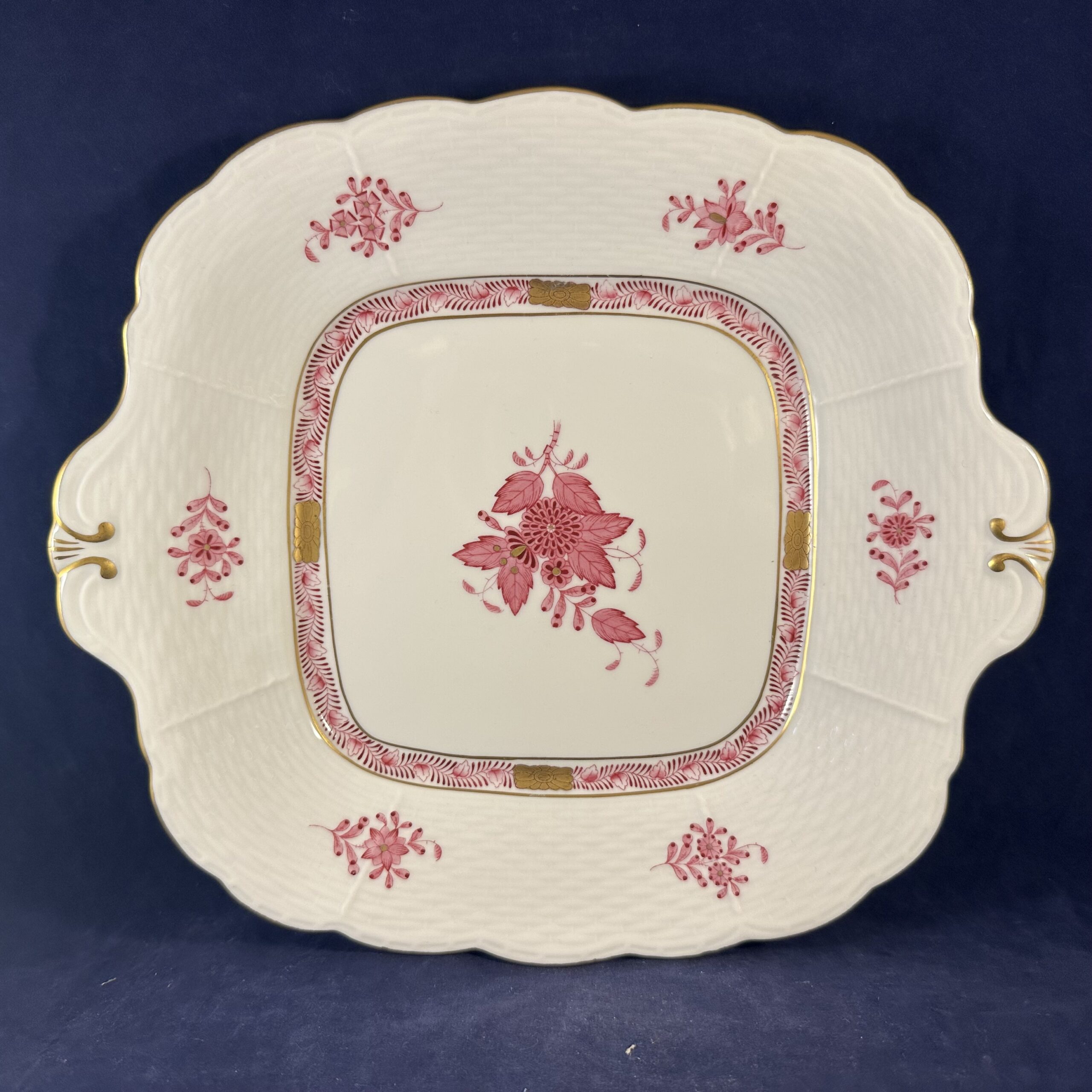 Herend Apponyi (431/AP) roze koekschaal met oortjes 24,5 x 24,5 cm