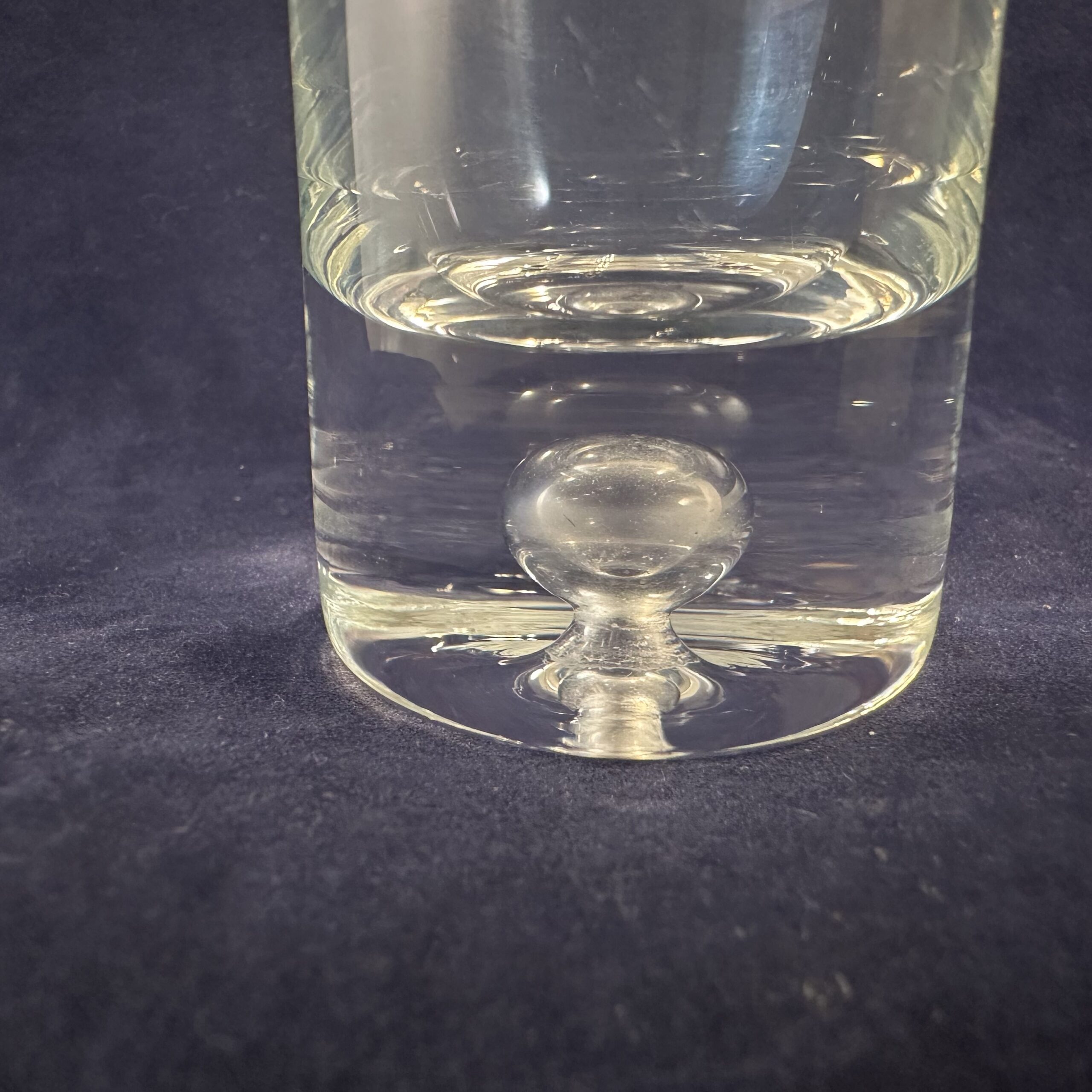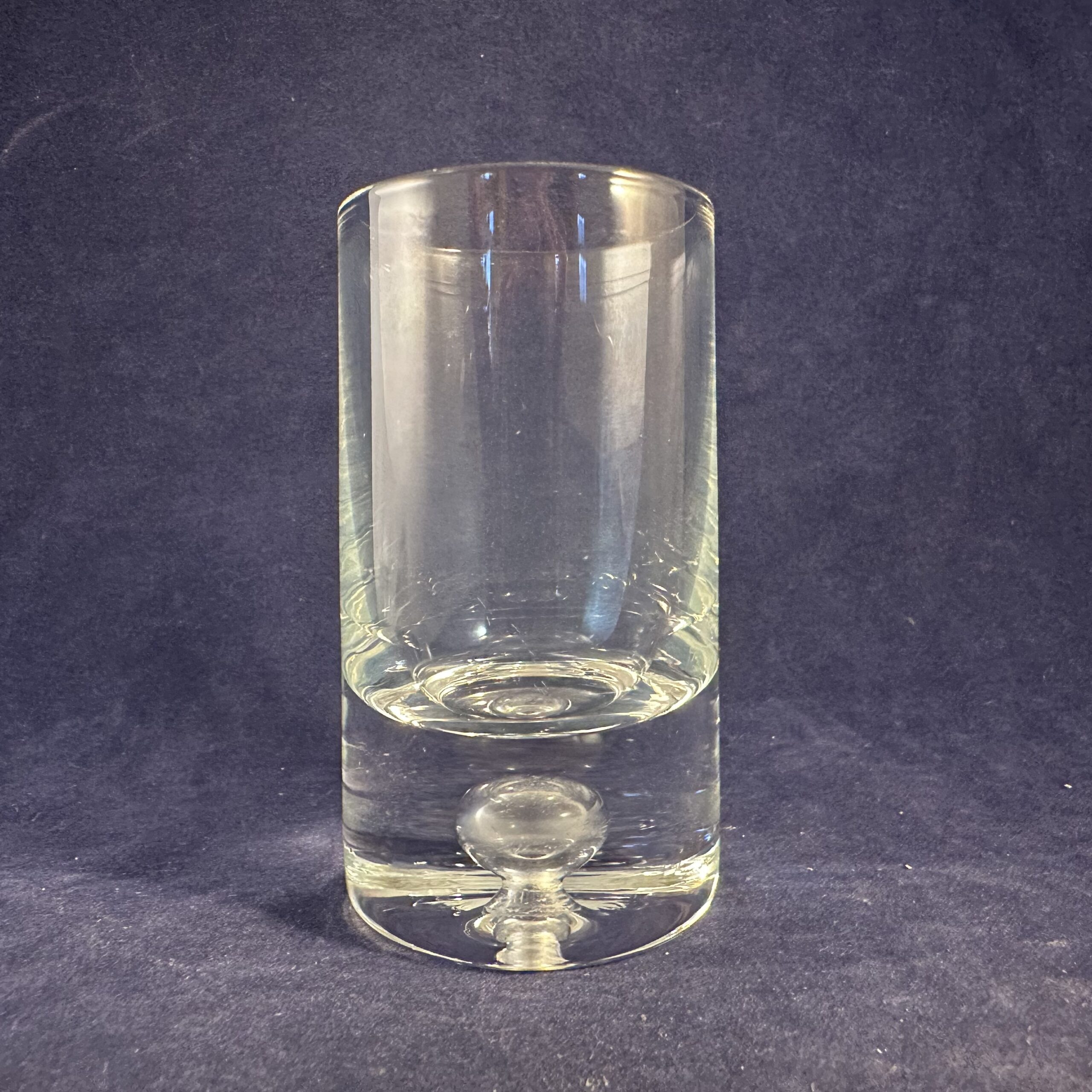 Kosta Boda borrel glas serie pippi, hoog 7,1 cm Ø 3,7 cm. Ontwerp Walter Hickman.