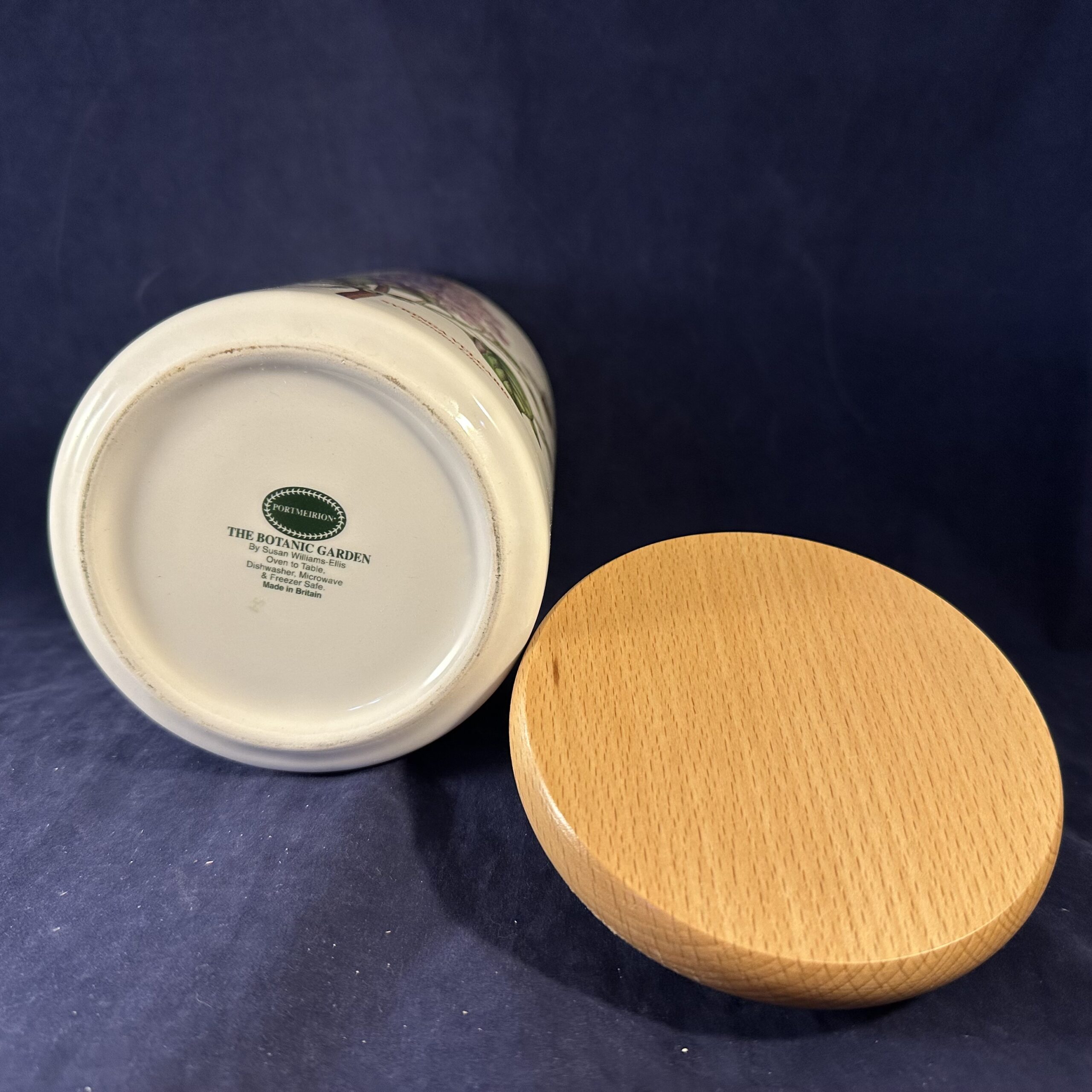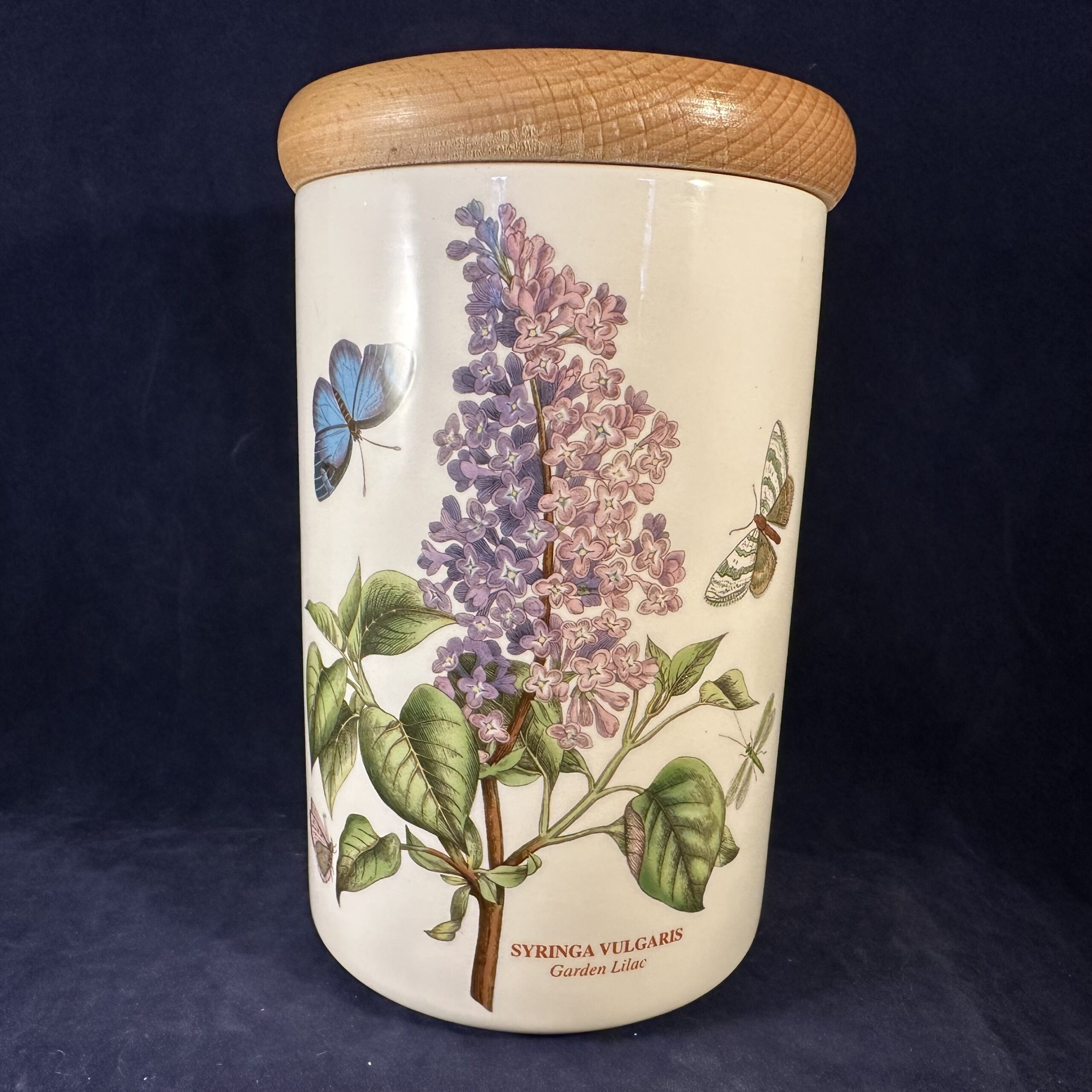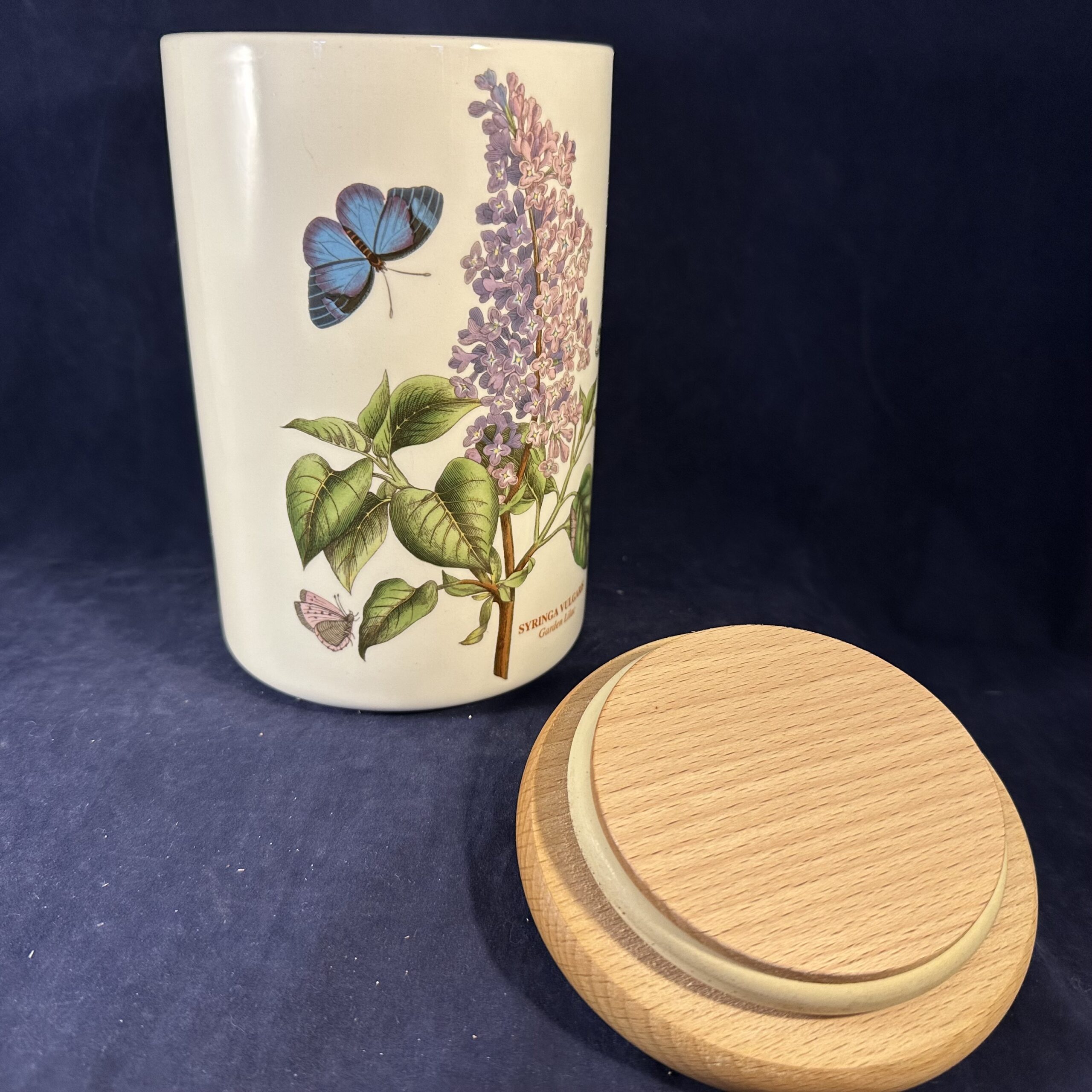 Portmeirion Botanic Garden voorraadpot met houten deksel hoog 16 cm tot deksel, Ø 10 cm,’Syringa Vulgaris/ Garden Lilac
