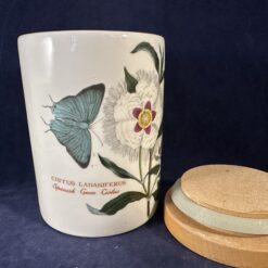 Portmeirion Botanic Garden voorraadpot/ voorraadbus met houten deksel, hoog 13,5 cm Ø 9 cm. ‘Cistus Ladaniferus/ Spanish Gum Cistus