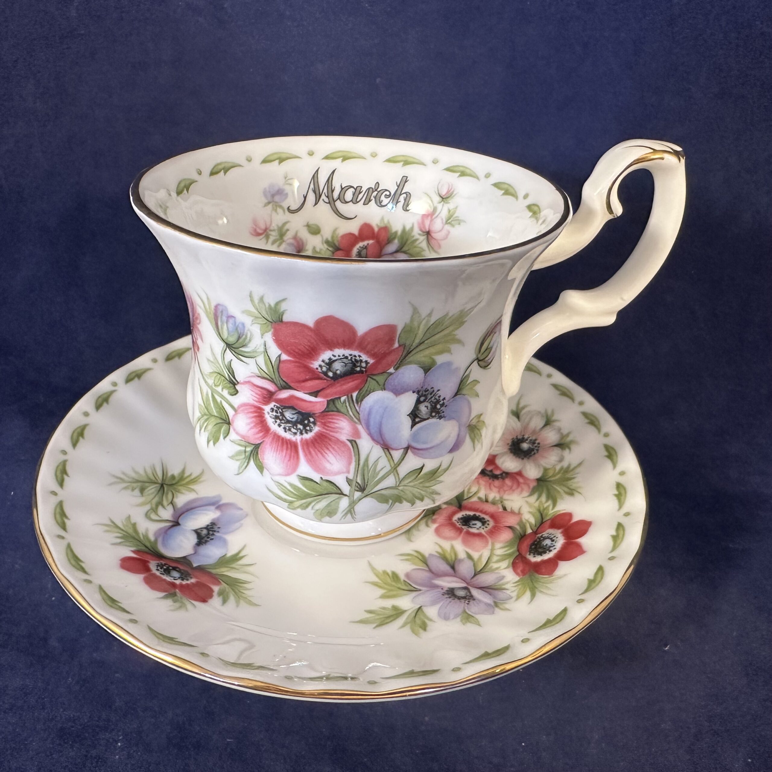 Royal Albert Flower of the month series dameskop en schotel ‘March’ hoog 6,8 cm Ø 7,3 cm