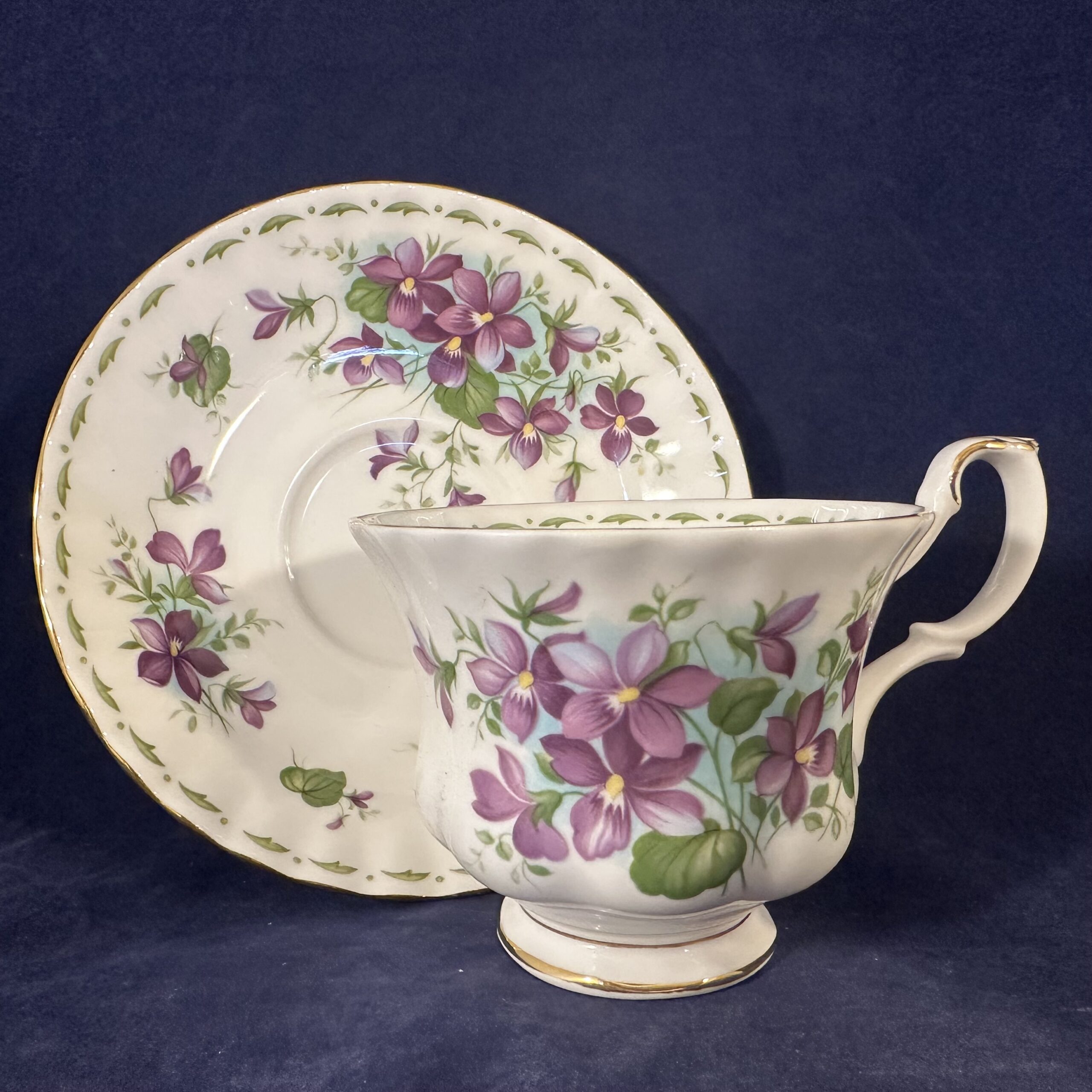 Royal Albert Flower of the month series herenkop en schotel ‘April’ hoog 7,8 cm, Ø 8,8 cm