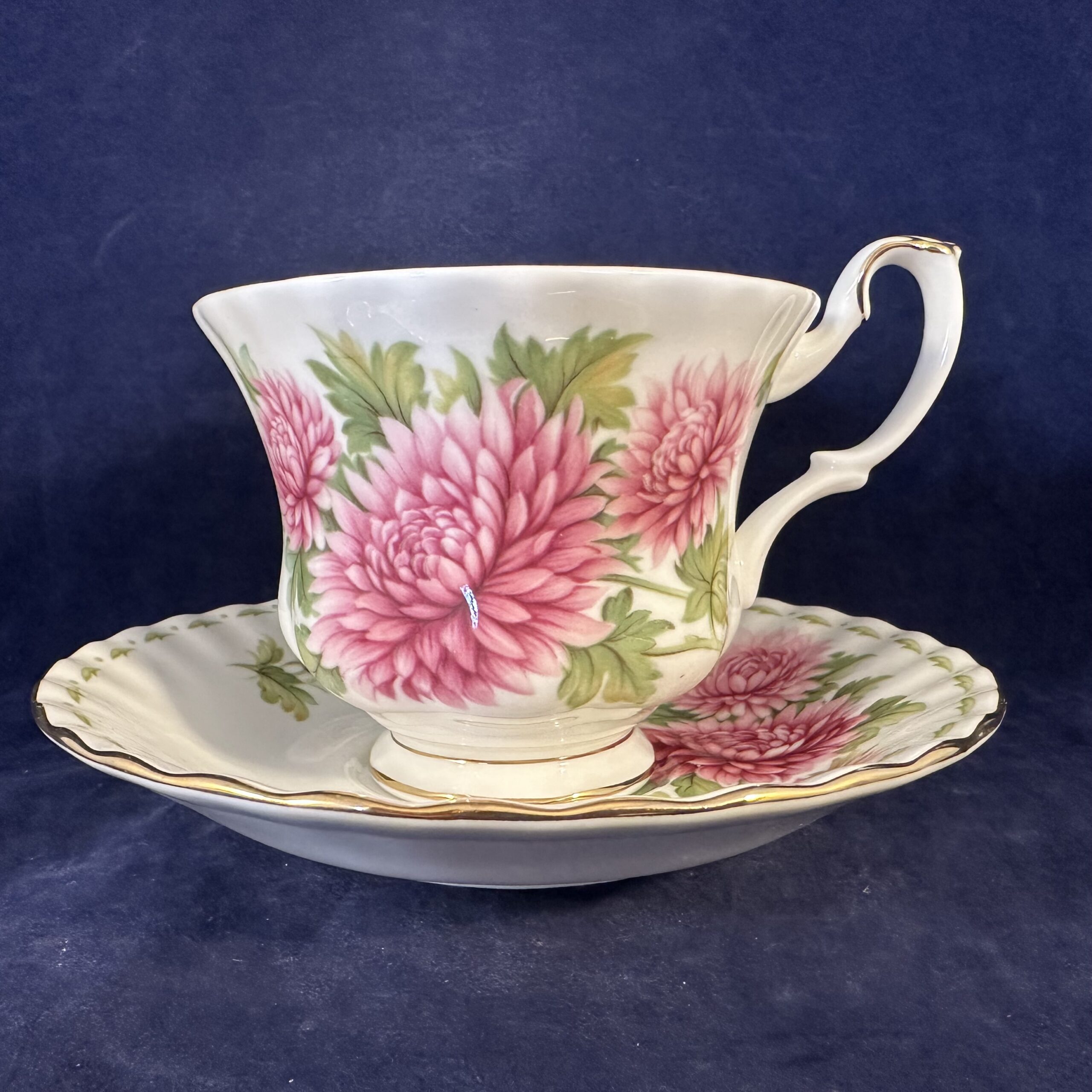 Royal Albert Flower of the month series herenkop en schotel ‘November’ hoog 7,8 cm, Ø 8,8 cm