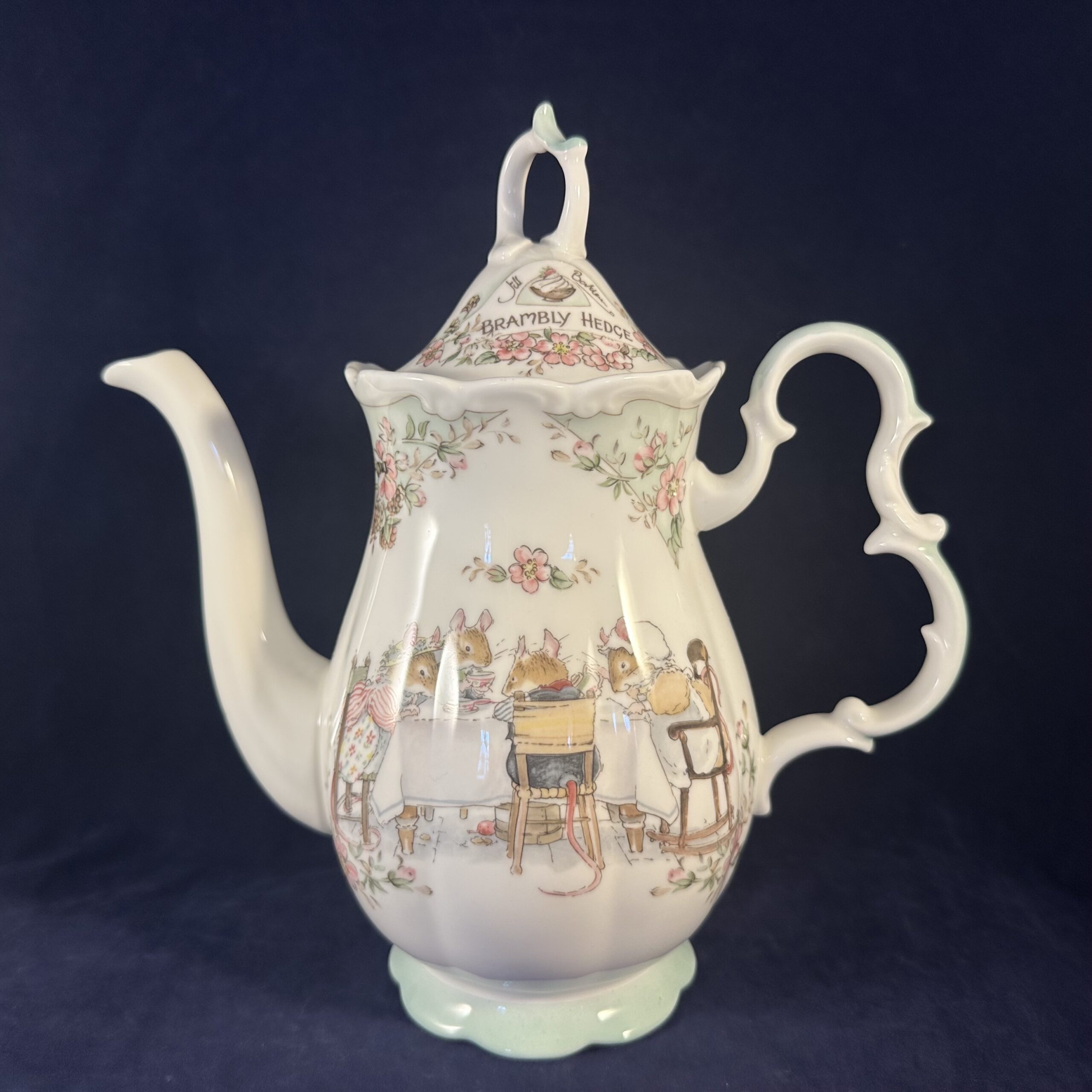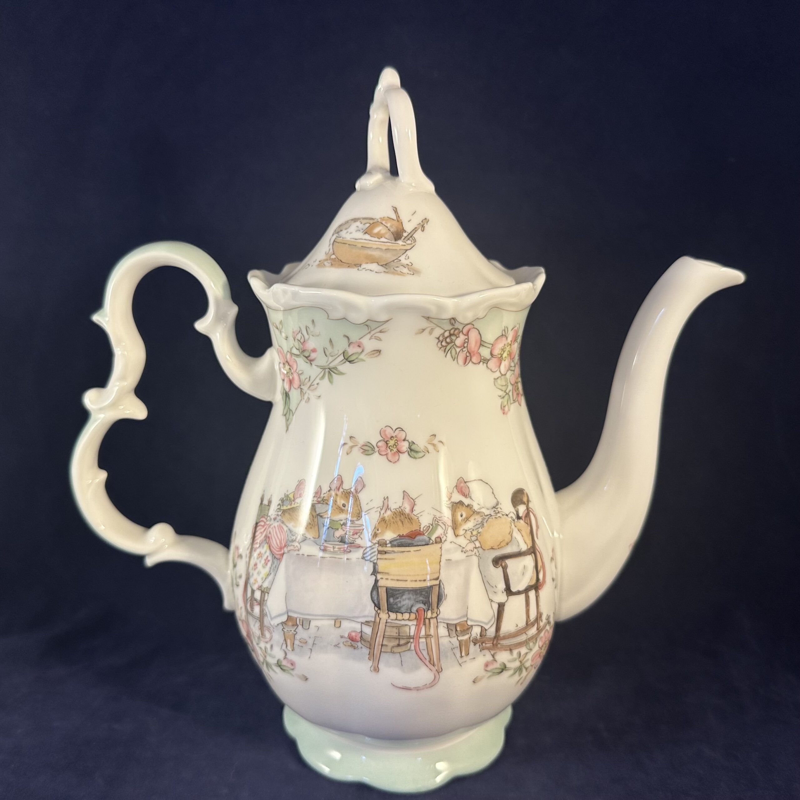 Een prachtige koffiepot uit de iconische Brambly Hedge collectie van Royal Doulton, gebaseerd op de geliefde illustraties van de Britse kunstenares Jill Barklem. Dit tijdloze stuk combineert verfijnd Brits porselein met de warme, sprookjesachtige wereld van de muisjes uit Brambly Hedge.
