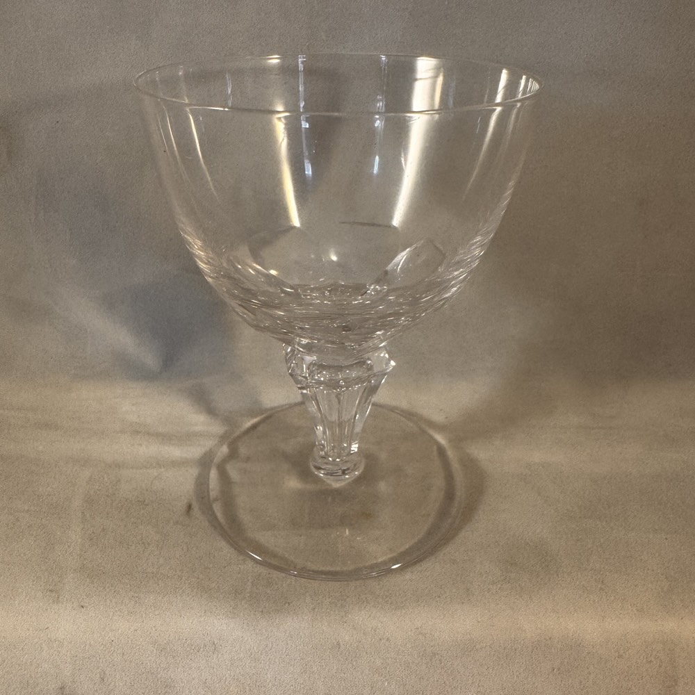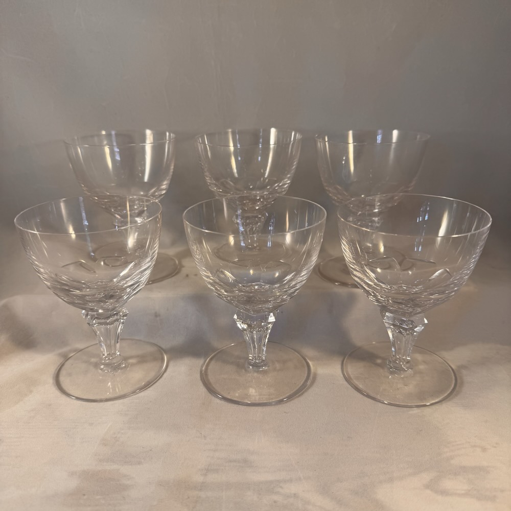 Set van 6 wijnglazen Kristalunie Maastricht “Bernina”, ontwerp F. Hollman 1948 hoog 10 cm, Ø 7,5 cm