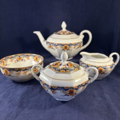 Union K theeset tsjechisch met 8 kop en schotels Ø kop 8,3 cm hoog 4,4 cm, theepot 900 cc, roomkan, suikerpot en spoelkom.