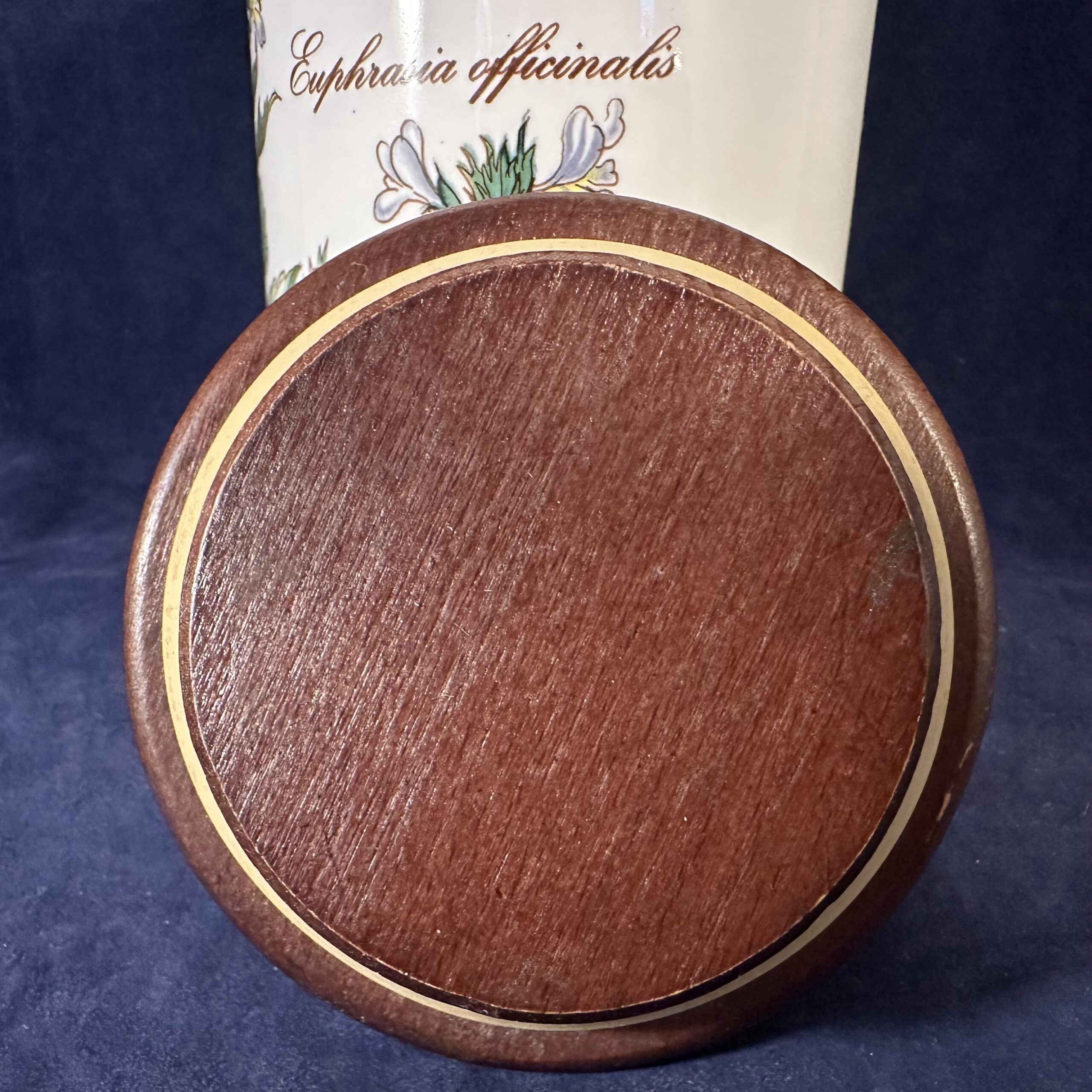 Villeroy en Boch – Botanica voorraadpot met houten deksel. Hoog 10cm, Ø 8 cm.’Euphrasia officinalis’