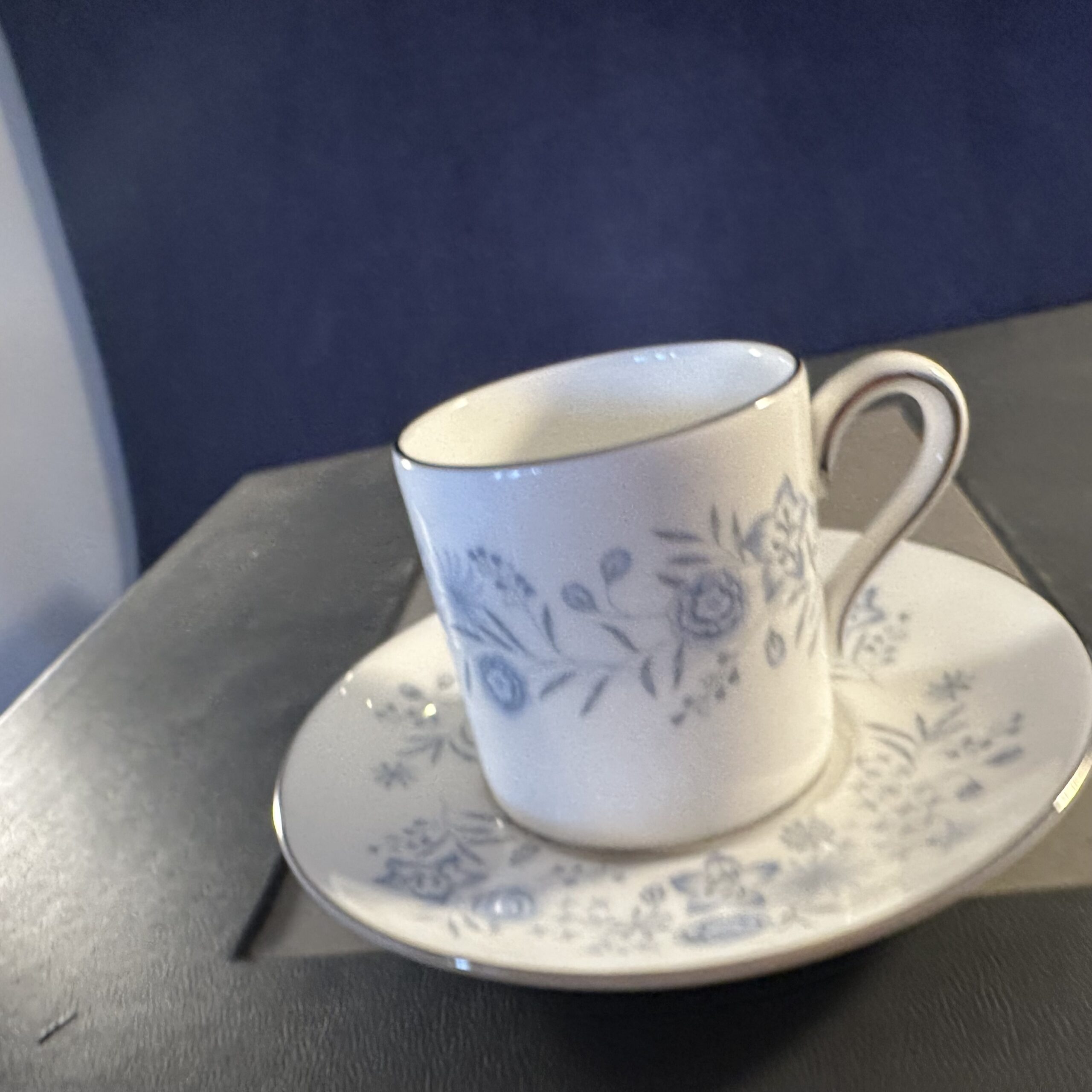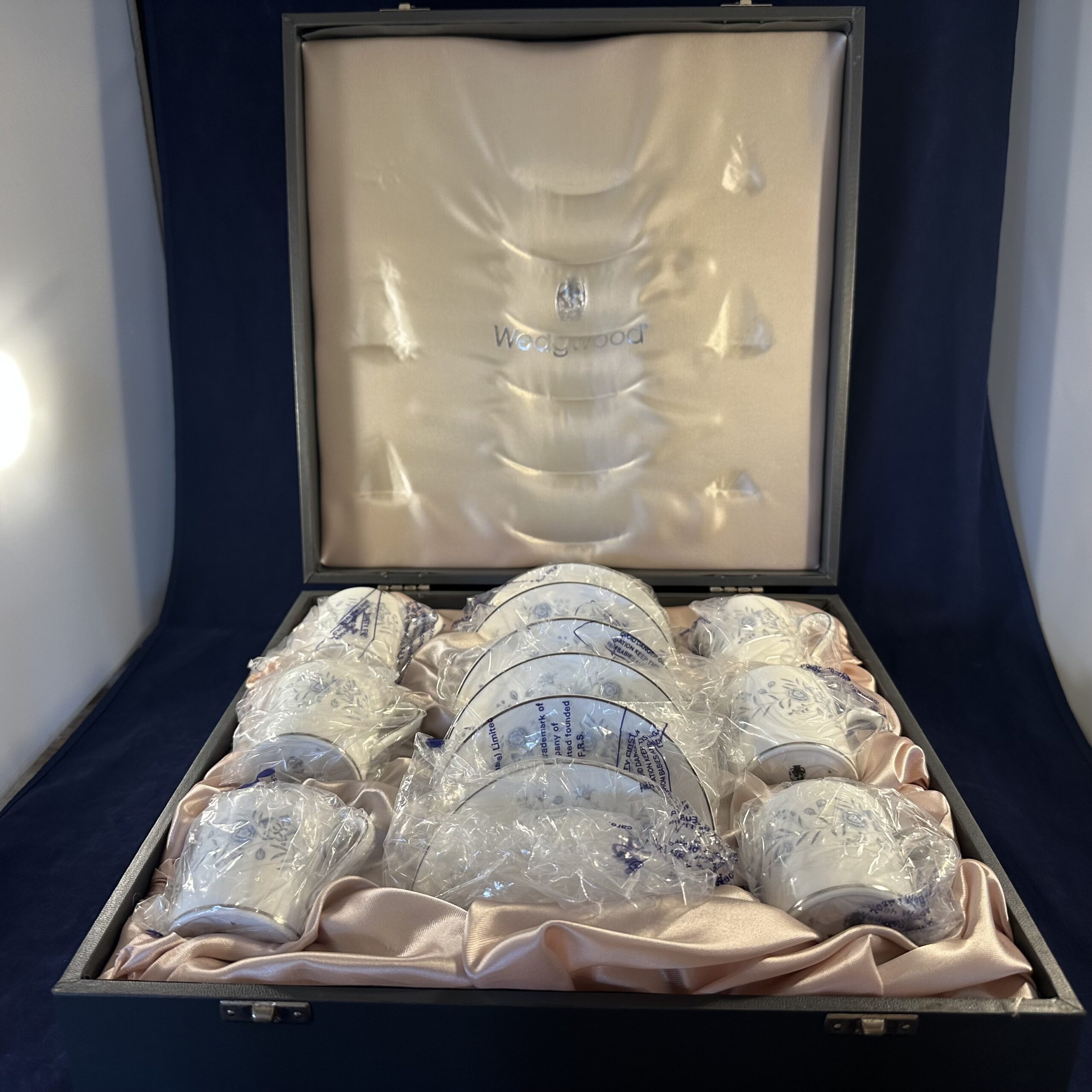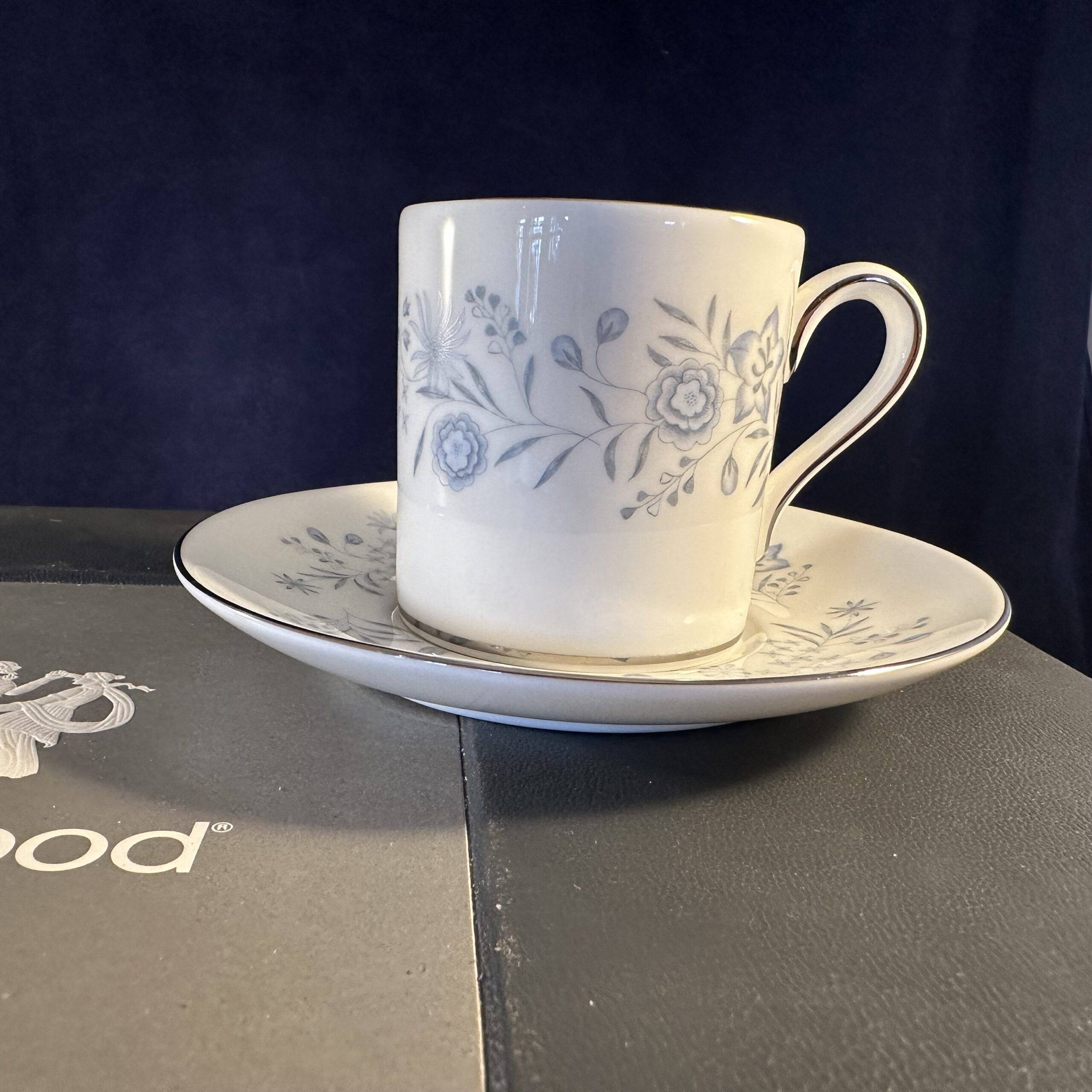 Wedgwood koffer met ‘Belle Fleur’ 6 espressokop en schotels Ø 5,5 cm hoog 5,8 cm.